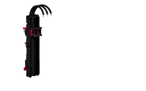 RiLineX Geräteadapter (25 A, 3-polig, inkl. Anschlussleitungen) in Breite 45 mm für 60 mm Sammelschienensysteme. Mit montierter, werkzeuglos verstellbarer Tragschiene zur Aufrastmontage der Geräte.