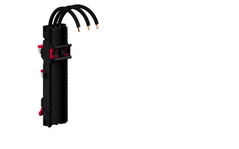 RiLineX Geräteadapter (80 A, 3-polig, inkl. Anschlussleitungen) in Breite 54 mm für 60 mm Sammelschienensysteme. Mit montierter, werkzeuglos verstellbarer Tragschiene zur Aufrastmontage der Geräte.