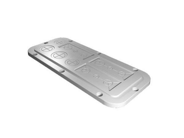| Kurzbeschreibung | Kunststoff-Flanschplatte, modular, metrischen Vorprägungen, für AX, BT:339x149mm |