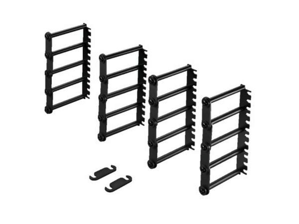 Lieferumfang: Kabelsprossen und Verbindungskämme. DK Kabelsprossen, 19"-Befestigung, Zur horizontalen Kabelführung innerhalb der Verteilerebene, 4 HE, Stahlblech, RAL 9005