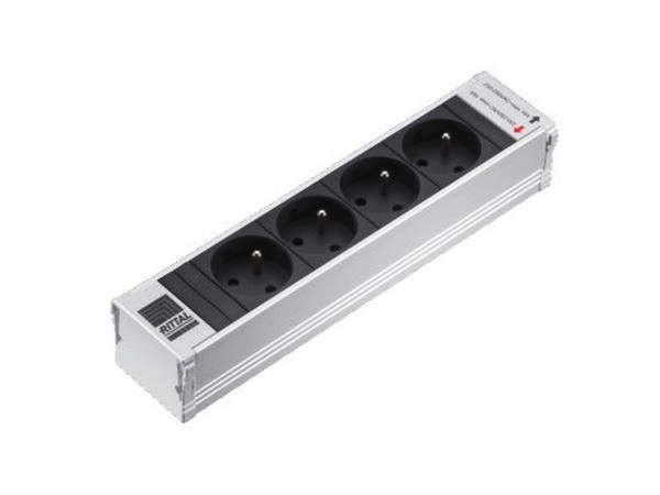 DK PSM Steckdosenmodul, zur modularen PSM Stromverteilung. Belegt 1 Steckplatz in der Stromschiene. F/B (Typ E, CEE 7/5), 4-fach, schwarz, 230 V, 16 A