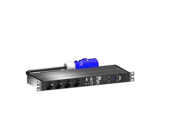 DK PDU switched, Kompakte Basis-Stromverteilung inkl. Energiemessung je Phase, einzeln schaltbare Ausgangssteckplätze, mit Netzwerkschnittstelle und Display, BHT: 450x44x144mm, CEE 7/3: 4x Schuko