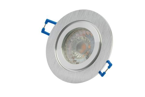Material: Aluminium / Farbe: Aluminium gebürstet / mit Clipverschluss, für MR16, 50mm Leuchtmittel / Lieferung ohne Fassung und ohne Leuchtmittel, Schutzart: IP44 / für LED und Halogen Leuchtmittel bis 50W geeignet, Außendurchmesser: 84mm / Bohrloch: 58mm / Einbautiefe ohne LM: 23mm