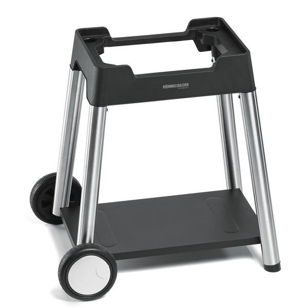 stabile Konstruktion für soliden und sicheren Stand, 4 Standrohre aus Edelstahl, 2 Räder für hohe Mobilität, 2 abnehmbare Tischauflagen zur Montage an den Griffen des Grills, praktisches Ablagefach, Befestigungsmaterial, passend zu BBQ 4000