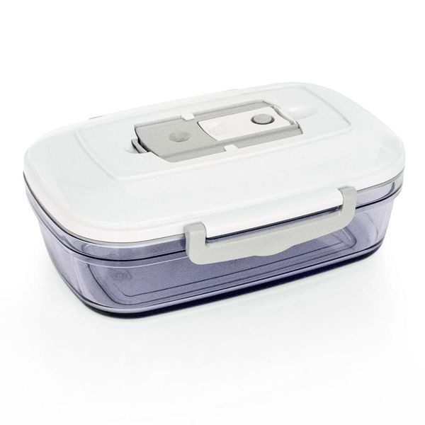 Vakuumier-Behälter: 1 Liter;rechteckig, weiß;für Kühl- und Gefrierschrank;mikrowellengeeignet, Deckel mit Datumsanzeige und Bügelverschluss;Maße: 23 x 17 x 9 cm;Behältermaterial: SAN (Styrol-Acrylnitril)