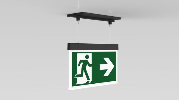 Moderne Zink-Druckguss Rettungszeichenleuchte mit Seilabhängung zur Deckeneinbaumontage. Die Kennzeichnung der Rettungs- und Fluchtwege kann wahlweise ein- oder beidseitig erfolgen. Sie gehört zur Leuchtenfamile der A-Serie, die Lösungen für jede Montageart bereithält und für ihr einheitliches, geradliniges Design mit dem German Design Award ausgezeichnet wurde. Kabelllose zentrale Steuerung und Überwachung für große Installationen von bis zu 50.000 Leuchten mit Wireless Professional. Planungssicherheit wird durch logisch vorgegebene aufgedruckte Piktogramme geboten. Die Piktogramme entsprechend DIN ISO 7010 (Pfeil rechts, links und unten) sind standardmäßig im Lieferumfang enthalten. Auf Anfrage kann die Beschriftung auch nach Kundenvorgabe erfolgen.