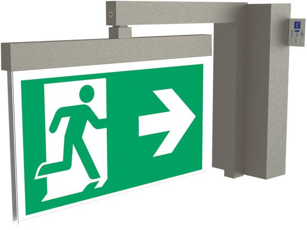 Moderne Zink-Druckguss Rettungszeichenleuchte zur Wandaufbaumontage. Durch den Wandausleger erfolgt die Kennzeichnung der Rettungs- und Fluchtwege im rechten Winkel zur Wand. Sie kann wahlweise ein- oder beidseitig erfolgen. Sie gehört zur Leuchtenfamile der A-Serie, die Lösungen für jede Montageart bereithält und für ihr einheitliches, geradliniges Design mit dem German Design Award ausgezeichnet wurde. Automatische Überwachung der Sicherheitsleuchte mit SelfControl. Planungssicherheit wird durch logisch vorgegebene aufgedruckte Piktogramme geboten. Die Piktogramme entsprechend DIN ISO 7010 (Pfeil rechts, links und unten) sind standardmäßig im Lieferumfang enthalten. Auf Anfrage kann die Beschriftung auch nach Kundenvorgabe erfolgen.