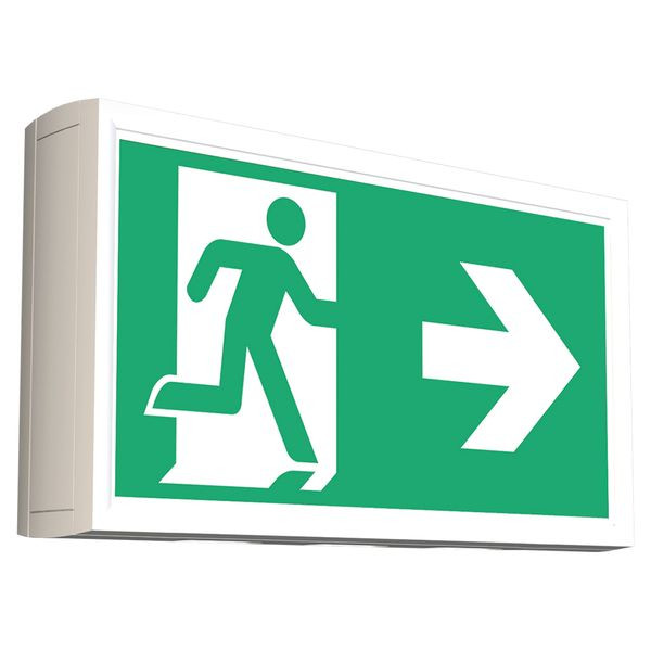 Kastenförmige Rettungszeichenleuchte aus Kunststoff zur Universalmontage. Geeignet zur ein- oder zweiseitigen Beschriftung.Durch den im Lieferumfang enthaltenen Adapter ist zudem die Flaggenmontage möglich. Der zusätzlichem Lichtaustritt nach unten unterstützt die Ausleuchtung der Flucht- und Rettungswege.Steuerung und Überwachung über zentrales 24-Volt-Low Power System. Planungssicherheit wird durch logisch vorgegebene aufgedruckte Piktogramme geboten. Die Piktogramme entsprechend DIN ISO 7010 (Pfeil rechts, links und unten) sind standardmäßig im Lieferumfang enthalten. Auf Anfrage kann die Beschriftung auch nach Kundenvorgabe erfolgen.