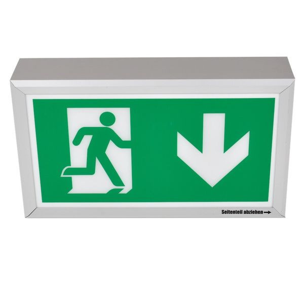 Robuste Rettungszeichenleuchte aus schlankem Aluminiumprofil, zur Wandmontage.Der zusätzlichem Lichtaustritt nach unten unterstützt die Ausleuchtung der Flucht- und Rettungswege.Automatische Überwachung der Sicherheitsleuchte mit SelfControl. Planungssicherheit wird durch logisch vorgegebene aufgedruckte Piktogramme geboten. Die Piktogramme entsprechend DIN ISO 7010 (Pfeil rechts, links und unten) sind standardmäßig im Lieferumfang enthalten. Auf Anfrage kann die Beschriftung auch nach Kundenvorgabe erfolgen.