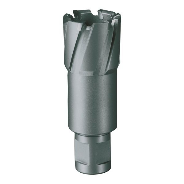 Kernbohrer mit Hartmetallschneiden. Insbesondere für Eisenbahnschienen, Hardox / Weldox 400 Stähle, Stahl, Stahlguß, hochchromlegierte Stähle wie V2A und V4A und höher legierte Stähle. Einsetzbar in allen Säulen- und Magnetständerbohrmaschinen mit Morsekonus in Verbindung mit RUKO Aufnahmehalter Nr. 108 302 / 108 303, der RUKO EasyLock Nr. 108 312 / 108 313 oder mit Weldonschaftdirektaufnahme wie z.B. RUKO Magnetständerbohrmaschine A10.