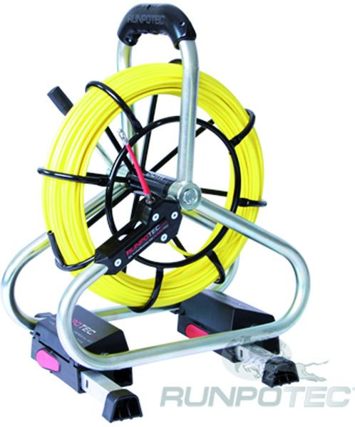 GF4.5 Glasfaserstab Ø 4,5 mm - Profi-Set - RUNPOTEC Gewinde RTG Ø 6 mm mit robuster Stahlhaspel Ø 330 mm (KTL/pulverbeschichtet) mit neuem, Doppelauslaufsystem (automatische Auslaufbremse und Schnellauslauf), zusätzliche Feststellbremse, ausziehbare Standfüße und Staufach für das Zubehör. Glasfaserstab Bruchlast 1300 kg, Gesamtbruchlast 220 kg.