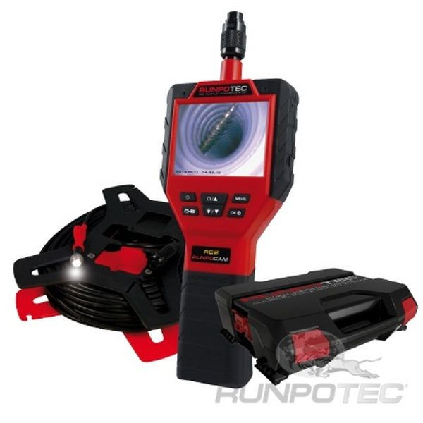Lieferumfang: 1 x RC2 Inspektionskamera mit Kabel 30 m inkl. Spule, 1 x RUNPOTEC Systemkoffer, 1 x RG 7 RUNPOGLEITER mit Frontgewinde, 1 x Systemgleiter, 1 x LED-Akku-Hochleistungslampe 320 Lumen, 1 x Micro Memory Card 8 GB, 1 x Magnet Fang-Set, 1 x Verbindungsgewinde Set RTG Ø 6 mm (3-teilig), 1 x Fanghaken, 1 x Aufsatz biegsam 12 cm, 1 x USB-Kabel 1,5 m, 1 x USB-Ladestecker 230 V, 1 x Gewindeaufsatz RC2