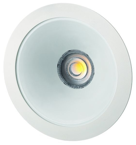 Downlight für die Innenanwendung, IP20 Frontring aus verzinkten Stahlblech pulverbeschichtet Modulträger aus verzinkten Stahlblech Trompetenreflektor aus Reinstaluminium, pulverbeschichtet matt weiß Gehäusefarbe: RAL9010 Hochwertige Optik aus PMMA zur präzisen Lichtlenkung und sehr guter Entblendung Homogene symmetrische Ausleuchtung, UGR<19 Ausstrahlwinkel: 60° Leistung: 18 oder 24 W Lichtfarbe: 4000 K Lichtstrom: 2600 oder 3500 lm CRI: >80 Lebensdauer L70B50: >= 60.000 h Lebensdauer L80B10: >= 50.000 h Eingangsspannung: 220-240 V AC, 50/60 Hz, 170-276 V DC Schutzklasse II Einbautiefe: 80 mm Deckenausschnitt: 200-225 mm Außendurchmesser: 237 mm Werkzeugloser Einbau in die Decke mit Spannfedern, die sich an die Deckenstärke (1 - 30 mm) anpassen Einbau in Betoneingießtöpfe möglich Einwurf-Betriebsgerät On/Off mit Leuchtenkabel vormontiert für leichten Einbau Durchgangsverdrahtungstauglich dieses Produkt enthält eine Lichtquelle der Energieeffizienzklasse D