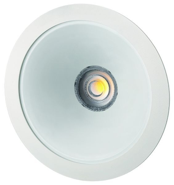 Sanierungsdownlight für die Innenanwendung, IP20 Frontring aus verzinkten Stahlblech pulverbeschichtet Modulträger aus verzinkten Stahlblech Passive Kühlung über den Reflektor Trompetenreflektor aus Reinstaluminium, pulverbeschichtet matt weiß Gehäusefarbe: RAL9010 Hochwertige Optik aus PMMA zur präzisen Lichtlenkung und sehr guter Entblendung Homogene symmetrische Ausleuchtung, UGR<19 Ausstrahlwinkel: 60° Leistung: 18 oder 24 W Lichtfarbe: 4000 K Lichtstrom: 2600 oder 3500 lm CRI: >80 Lebensdauer L70B50: >= 60.000 h Lebensdauer L80B10: >= 50.000 h Eingangsspannung: 220-240 V AC, 50/60 Hz, 180-280 V DC Schutzklasse II Einbautiefe: 80 mm Deckenausschnitt: 230-255 mm Außendurchmesser: 270 mm Werkzeugloser Einbau in die Decke mit Spannfedern, die sich an die Deckenstärke (1 - 30 mm) anpassen Einbau in Betoneingießtöpfe möglich Einwurf-Betriebsgerät mit Leuchtenkabel vormontiert für leichten Einbau Durchgangsverdrahtungstauglich Dimmbar über DALI-2 oder Push-Dim dieses Produkt enthält eine Lichtquelle der Energi