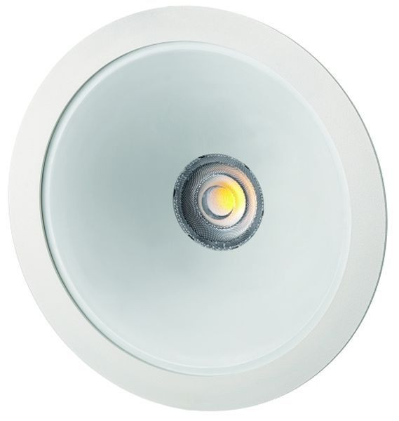 Sanierungsdownlight für die Innenanwendung, IP20 Frontring aus verzinkten Stahlblech pulverbeschichtet Modulträger aus verzinkten Stahlblech Passive Kühlung über den Reflektor Trompetenreflektor aus Reinstaluminium, pulverbeschichtet matt weiß Gehäusefarbe: RAL9010 Hochwertige Optik aus PMMA zur präzisen Lichtlenkung und sehr guter Entblendung Homogene symmetrische Ausleuchtung, UGR<19 Ausstrahlwinkel: 60° Leistung: 18 oder 24 W Lichtfarbe: 3000 K Lichtstrom: 2600 oder 3500 lm CRI: >80 Lebensdauer L70B50: >= 60.000 h Lebensdauer L80B10: >= 50.000 h Eingangsspannung: 220-240 V AC, 50/60 Hz, 180-280 V DC Schutzklasse II Einbautiefe: 80 mm Deckenausschnitt: 275-300 mm Außendurchmesser: 320 mm Werkzeugloser Einbau in die Decke mit Spannfedern, die sich an die Deckenstärke (1 - 30 mm) anpassen Einbau in Betoneingießtöpfe möglich Einwurf-Betriebsgerät mit Leuchtenkabel vormontiert für leichten Einbau Durchgangsverdrahtungstauglich Dimmbar über DALI-2 oder Push-Dim dieses Produkt enthält eine Lichtquelle der Energi