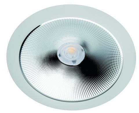 Sanierungsdownlight für die Innenanwendung, IP20 Frontring aus Aluminium pulverbeschichtet Passive Kühlung über den Reflektor Trompetenreflektor aus Aluminium, aluminium eloxiert, hochglänzend Gehäusefarbe: weiß Hochwertige Optik aus Silikatglas zur präzisen Lichtlenkung und sehr guter Entblendung Homogene symmetrische Ausleuchtung, UGR<19 Ausstrahlwinkel: 60° Leistung: 15 W, 17 W, 19 W oder 21 W (über Dipschalter am Konverter einstellbar) Lichtfarbe: 3000 K, 3500 K oder 4000 K (über Schiebeschalter am Konverter einstellbar) Lichtstrom: 1970 lm, 2190 lm, 2450 lm oder 2670 lm (je nach Leistung) CRI: >80 Lebensdauer L70B50: >= 50.000 h Eingangsspannung: 220-240 V AC, 50/60 Hz, 176-280 V DC Schutzklasse II ET: 90 mm, DA: 275-300 mm, Außendurchmesser: 320 mm Deckenstärke 1 - 30 mm Einwurf-Betriebsgerät On/Off mit Leuchtenkabel vormontiert für leichten Einbau Durchgangsverdrahtungstauglich dieses Produkt enthält eine Lichtquelle der Energieeffizienzklasse C