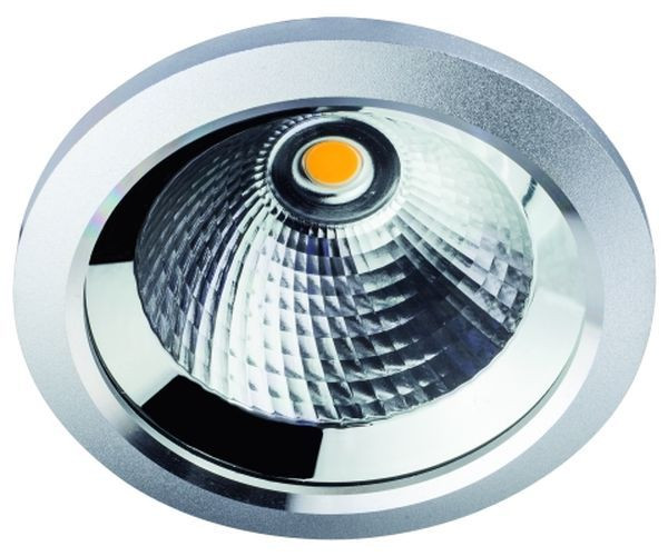 für die Innenanwendung, IP43 Gehäuse: Aluminium-Druckguss (Schutzglas, klar) Gehäusefarbe: sandsilber nicht schwenkbar Ausstrahlwinkel: 36° Leistung: 14 W Lichtfarbe: 3000 K Lichtstrom: 1450 lm CRI: >80 Lebensdauer L70B50: >= 50.000 h Betriebsstrom: 350 mA DC Schutzklasse III Einbautiefe: 110 mm Deckenausschnitt: 105 mm Außendurchmesser: 116 mm Energieeffizienzklasse: E exklusive Konstantstrom-Konverter