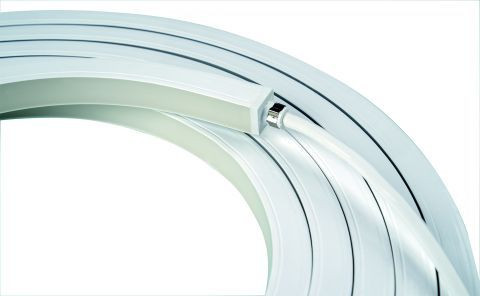 flexible LED Leiste vergossen in UV- und Salzwasserbeständigen weißen Silikon für die Innen und Außenanwendung, IP65 alle 50 mm / 7 LEDs teilbar Anzahl der LEDs pro Meter: 140 LED Abstand: 7,14 mm Ausstrahlwinkel: 110° CRI: >90 Lichtstrom pro Meter: 484 lm Leistung pro Meter: 13 W Lebensdauer L70B50: >= 54.000 h LxBxH in mm: 5.000 x 16 x 16 Temperaturbereich: -20 bis +45°C Verarbeitungstemperatur: +10 bis +45°C maximale Länge pro Anschluss: 5 Meter Biegedurchmesser vertikal: 130 mm Lieferumfang: 5 Meter-Rolle mit je 1 Meter Anschlussleitung an jedem Ende, 2x Silikon Endkappe Dieses Produkt enthält eine Lichtquelle der Energieeffizienzklasse F
