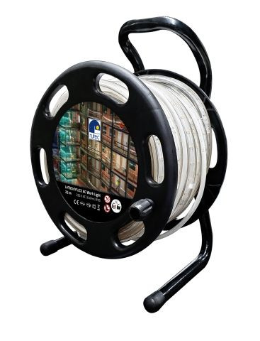 Baustellenbeleuchtung in LED-Strip Ausführung für die Außenanwendung, IP65 UV-beständig Anzahl der LEDs: 1850 LED Abstand: 13,51 mm Ausstrahlwinkel: 120° CRI: >80 Lichtstrom pro Meter: 800 lm Betriebsspannung: 230 V AC Leistung pro Meter: 8 W Energieeffizienzklasse: E Lebensdauer L70B50: >= 50.000 h LxBxH in mm: 25.000 x 11,3 x 8 Achtung: LED Strip nur im komplett abgerollten Zustand betreiben Maximale Länge pro Anschluss: 25 Meter Lieferumfang: 25 Meter-Rolle auf Trommel aufgewickelt mit 1,6 m Anschlusskabel und Konturenstecker