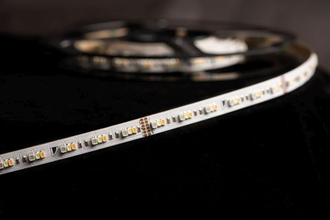 Flexible LED Leiste bestückt mit RGB,3000K und 5700K SMD LEDs, kompakt hintereinander angeordnet selbstklebende Rückseite, für die Innenanwendung verschiedene Lichtsteuerungen mit RGB Controller 80206 alle 10 cm oder 6 LEDs teilbar LED Abstand: 17 mm Maximale Länge pro Anschluss: 3 Meter. Für größere Längen neu einspeisen. Lieferumfang: 3 Meter-Rolle, 1 Einspeiser Nach Binning-Codes sortiert und gelagert.