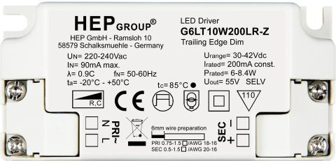 | Kurzbeschreibung | LED Konverter 200mA 6W-8,4W 30-42V 220-240V AC,SKII,dimmb.Phasenabschnitt |