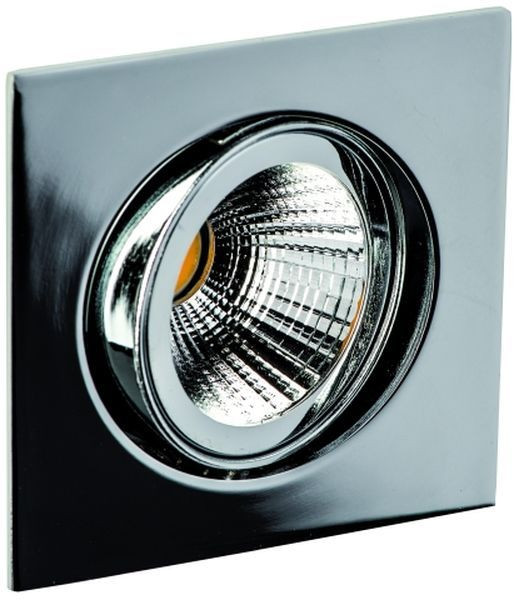für die Innenanwendung, IP 20 Gehäuse: Aluminium-Druckguss, Glasreflektor Gehäusefarbe: chrom 30° schwenkbar Ausstrahlwinkel: 25° Leistung: 8 W Lichtfarbe: 2700 K Lichtstrom: 900 lm CRI: >80 Lebensdauer L70B50: >= 50.000 h Betriebsstrom: 350 mA DC Schutzklasse III, MM Einbautiefe: 35 mm Deckenausschnitt: 68 mm Außenmaße: 82 x 82 mm inklusive Konstantstrom-Konverter, dimmbar Phasenabschnitt dieses Produkt enthält eine Lichtquelle der Energieeffizienzklasse E