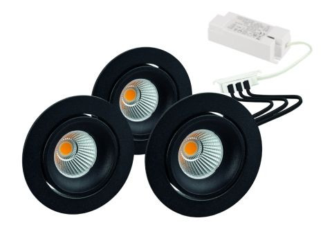 | Kurzbeschreibung | schw.,rund,300mA,3x6W,IP40,3000K,CRI80-schwarz matt GAIL LED-Einbaustrahler3er Set on-off plug&play |