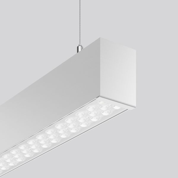 Formschöne Pendelleuchte. Gehäuse Aluminium-Strangpressprofil eloxiert. Endkappen Aluminium pulverbeschichtet, ohne sichtbare Schrauben. Hocheffiziente LED-Einheiten mit optimaler Lichtlenkung durch präzise Linsenoptik aus Kunststoff (PC) klar. 2-Punkt Stahlseilabhängung frei positionierbar und stufenlos höhenverstellbar. Mit Anschlussleitung (2, 5 m). Baldachin bei Bedarf bitte separat bestellen. Hervorragend geeignet für Bürobereiche (RUG = 19) und Bildschirmarbeitsplätze (BAP) gem. DIN EN 12464-1.