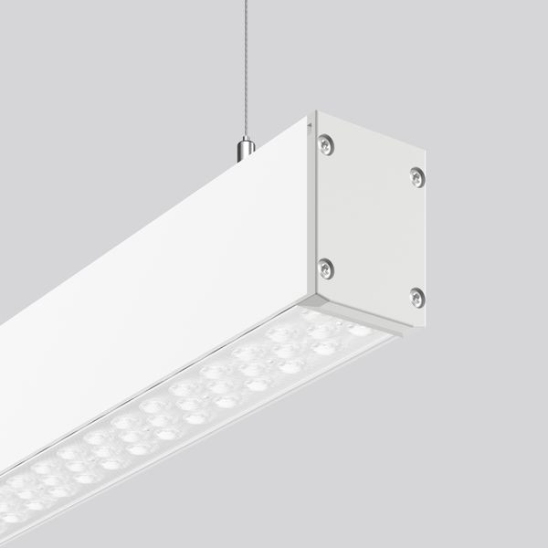 Formschöne Pendelleuchte. Gehäuse Aluminium-Strangpressprofil pulverbeschichtet. Endkappen Kunststoff grau. Hocheffiziente LED-Einheiten mit optimaler Lichtlenkung durch präzise Linsenoptik aus Kunststoff (PC) klar. 2-Punkt Stahlseilabhängung frei positionierbar und stufenlos höhenverstellbar. Mit Anschlussleitung (2, 5 m). Baldachin bei Bedarf bitte separat bestellen. Hervorragend geeignet für Bürobereiche (RUG = 19) und Bildschirmarbeitsplätze (BAP) gem. DIN EN 12464-1. Leuchte mit begrenzter Oberflächentemperatur nach DIN EN 60598-2-24 zur Verwendung in einer Umgebung, in der eine Ablagerung von leitfähigem Staub auf der Leuchte erwartet werden kann.
