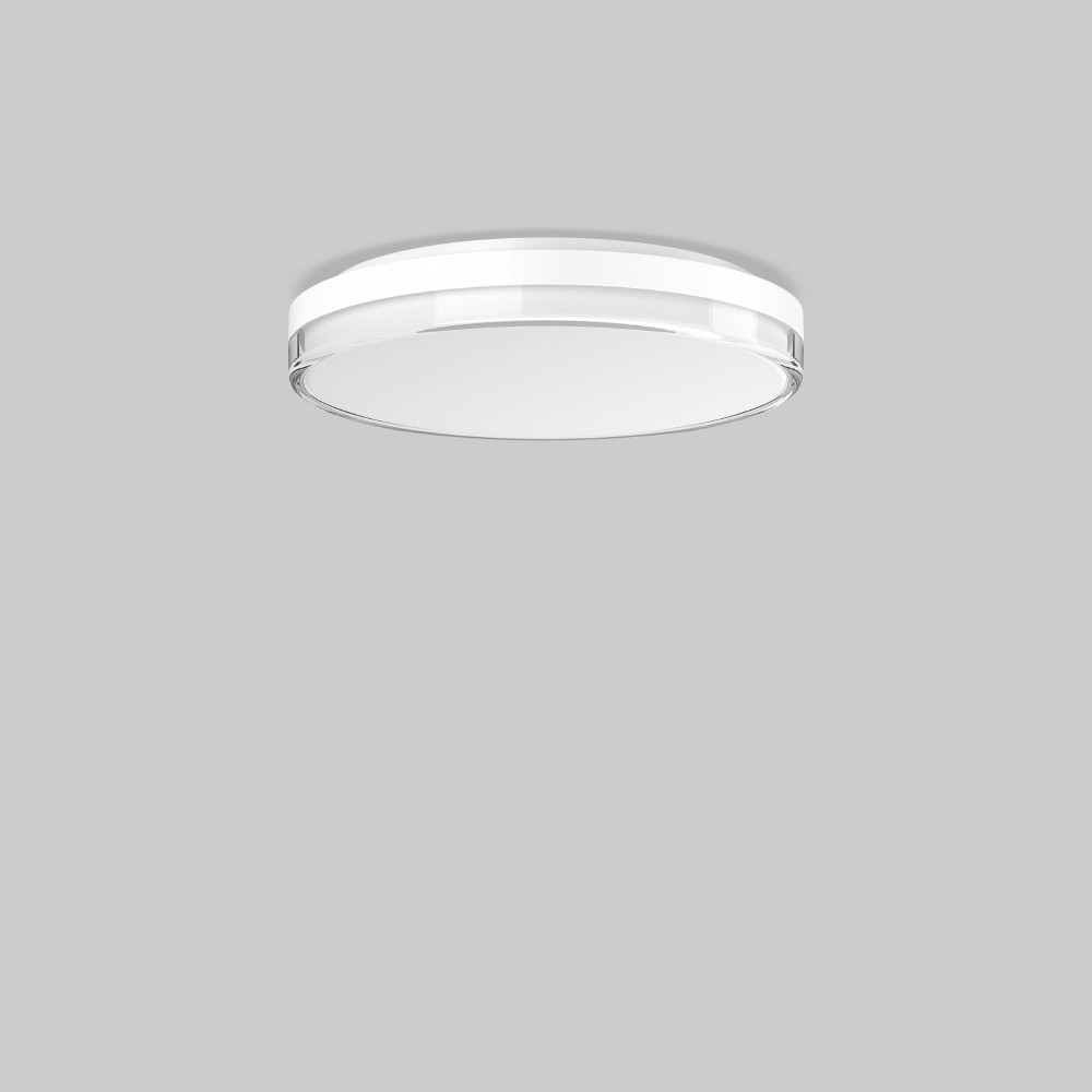 Dekorative runde Anbauleuchte für den Innenbereich mit Diffusor aus Kunststoff in Glasoptik. Armatur aus UV-beständigem, schlagzähen Kunststoff (Polycarbonat). Diffusor aus vergilbungsfreiem Kunststoff (PMMA) glänzend, innen satiniert. Befestigung des Diffusors mit Bajonettverschluss. Homogene Ausleuchtung des Diffusors. Lichtverteilung symmetrisch. Indirekter Lichtanteil zur dezenten Deckenaufhellung. Geeignet für Deckenanbau, Wandanbau. Einfache Montage und Installation durch Sicherungseil und Plug-and-Play-Stecksystem. Der rückseitig große Anschlussraum für die komfortable Verlegung der Anschlussleitung eignet sich auch perfekt für Durchgangsverdrahtung. Seitliche Kabeleinführung vorbereitet. Große Flexibilität durch MultiLumen und MultiColour. MultiLumen: Einstellbarkeit des Leuchtenlichtstroms in 3 Stufen. Werkseitig auf höchsten Leuchtenlichtstrom voreingestellt. MultiColour: Farbtemperatur 3000 K oder 4000 K individuell einstellbar. Werkseitig auf 3000 K eingestellt.