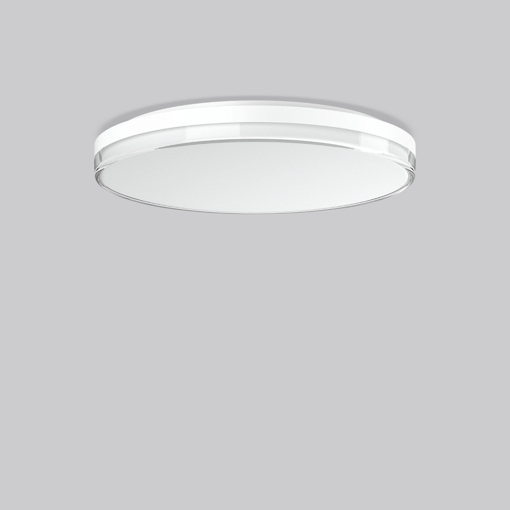 Dekorative runde Anbauleuchte für den Innenbereich mit Diffusor aus Kunststoff in Glasoptik. Armatur aus UV-beständigem, schlagzähen Kunststoff (Polycarbonat). Diffusor aus vergilbungsfreiem Kunststoff (PMMA) glänzend, innen satiniert. Befestigung des Diffusors mit Bajonettverschluss. Homogene Ausleuchtung des Diffusors. Lichtverteilung symmetrisch. Indirekter Lichtanteil zur dezenten Deckenaufhellung. Geeignet für Deckenanbau, Wandanbau. Einfache Montage und Installation durch Sicherungseil und Plug-and-Play-Stecksystem. Der rückseitig große Anschlussraum für die komfortable Verlegung der Anschlussleitung eignet sich auch perfekt für Durchgangsverdrahtung. Seitliche Kabeleinführung vorbereitet. Große Flexibilität durch MultiLumen und MultiColour. MultiLumen: Einstellbarkeit des Leuchtenlichtstroms in 3 Stufen. Werkseitig auf höchsten Leuchtenlichtstrom voreingestellt. MultiColour: Farbtemperatur 3000 K oder 4000 K individuell einstellbar. Werkseitig auf 3000 K eingestellt. HF-Bewegungsmelder und Lichtsensor. Funktionsparameter des Bewegungsmelders (Deckenmontage von bis zu 6, 0 m bzw. Wandmontage von bis zu 2, 5 m): Betriebsfrequenz 5, 8 GHz. Erfassungswinkel 175°. Erfassungsbereich bis zu 3 m radial, abhängig von Montagehöhe. Funktionen über Dip-Schalter einstellbar. Empfindlichkeit: 50-100 %, in 2 Stufen einstellbar. Haltezeit: 5 Sek., 10 Min., in 4 Stufen einstellbar. Helligkeitsschwellenwert: Deaktiviert / 30 lx, einstellbar. Standby-Dimmstufe: 0% oder 20 %, einstellbar. Standby-Dauer: unendlich oder 15 Min., einstellbar.
