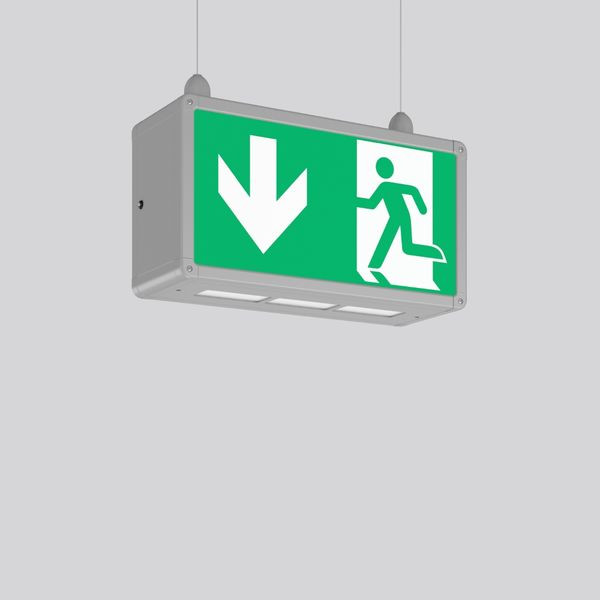 Rechteckige Pendelleuchte im klassischen Design. Zur Rettungswegkennzeichnung. Gehäuse Aluminium mit Eckverbindungen Kunststoff. Kunststoffscheiben opal mit Rettungszeichen einseitig/zweiseitig. Pendelleuchten (Pendel bauseits) für zwei Ketten- oder Seilpendel vorbereitet. Betriebsgerät integriert. Zum Anschluss an zentrale Sicherheitsstromversorgung geeignet.