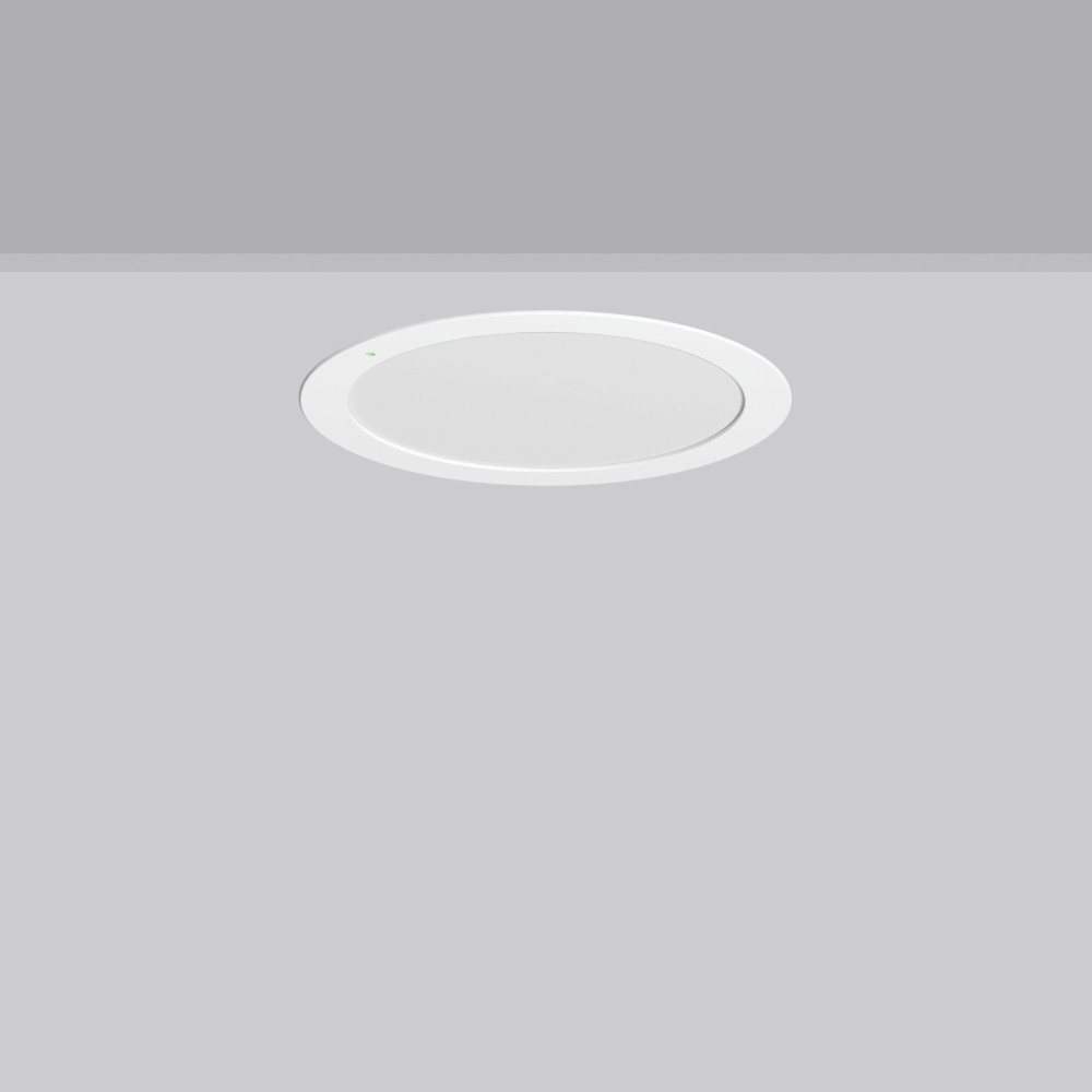 Flexibles rundes Einbau-Downlight mit Multi-Funktionen. Leuchte zur Rettungswegbeleuchtung. Gehäuse Stahlblech pulverbeschichtet. Leuchtenrahmen Aluminium pulverbeschichtet. Diffusor aus vergilbungsfreiem Kunststoff (PMMA) opal. LED Backlight-Technologie für eine homogene Ausleuchtung der gesamten lichtabgebenden Fläche. Deckenbefestigung mit Federsystem. Inklusive Betriebsgerät extern über Steckverbindung, Verbindungsleitung 250 mm. Einfachste Installation des Betriebsgerätes durch Dreh-Stecksystem. MultiColour: Farbtemperatur mit Schaltelement einstellbar. Werkseitig auf 4000 K eingestellt. MultiLumen: Leuchtenlichtstrom ist in 4 Stufen einstellbar. Werkseitig auf Stufe 2 voreingestellt. Einzelbatteriesystem mit automatischem Selbsttest.