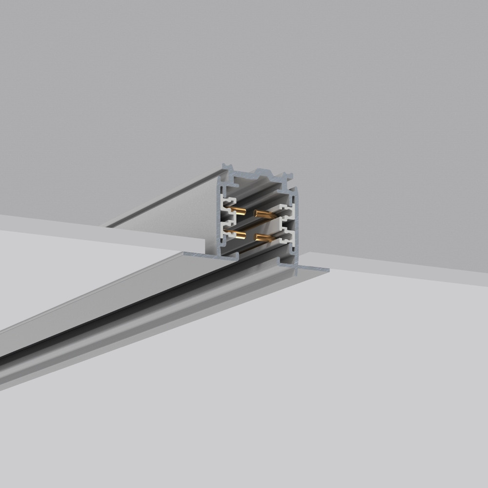 3-Phasen-Stromschiene, Einbau, on/off. Flügelstromschiene. Aluminium-Strangpressprofil lackiert. Schienen beliebig ablängbar. Für den Handbereich zugelassen. Spannung: 250 V~ oder Drehstrom 230/400 V max. 16 A. Befestigungsbohrungen bei 250, 1000, 2000, 2750 mm.