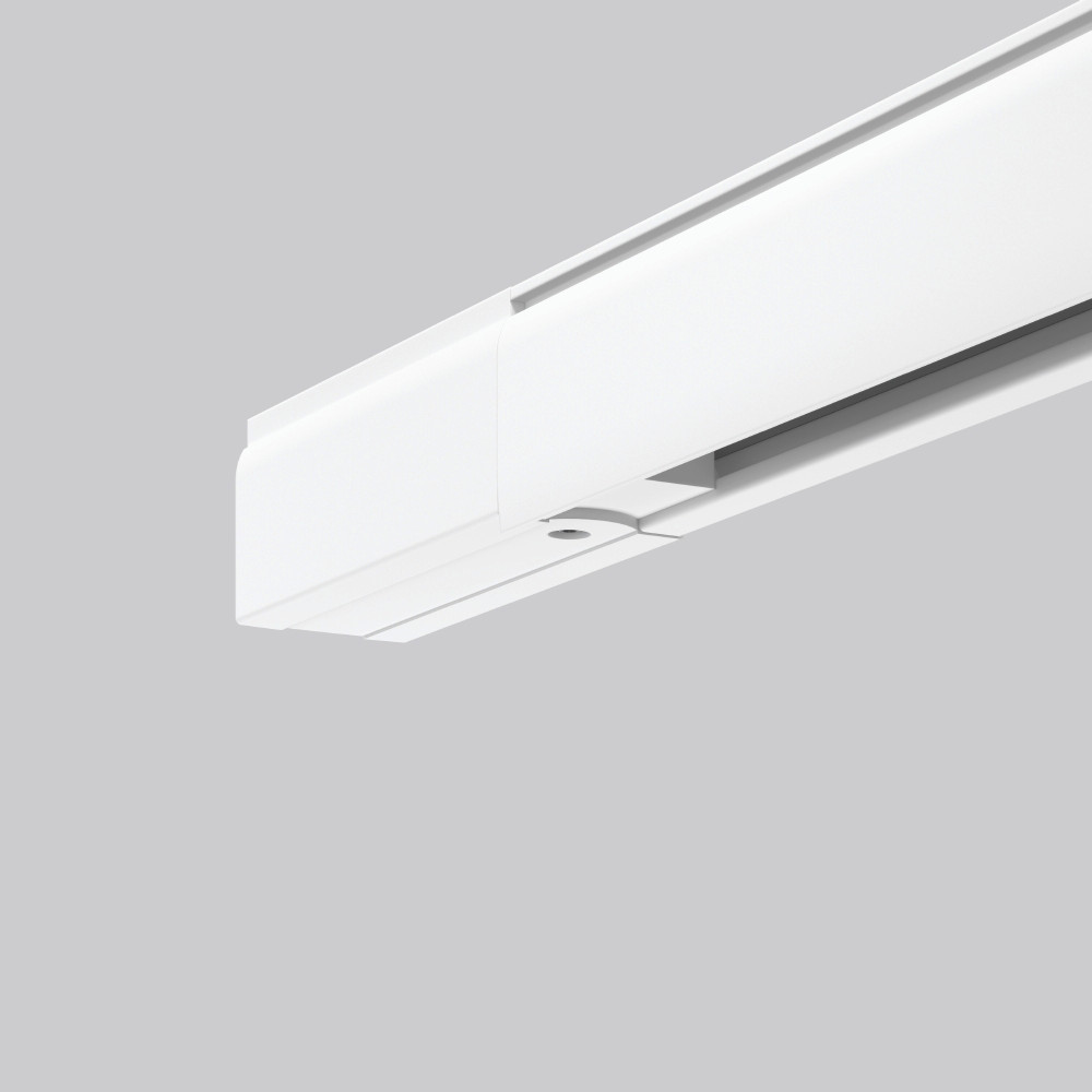 Anfangseinspeisung für 3-Phasen-Stromschienen (DALI). Polarität rechts. Kunststoff. Geeignet für Einbau, und Anbau-Stromschienen. Für Einbau-Stromschiene nur in Verbindung mit passender Abdeckung. Länge eingebaut: LE 90 mm.