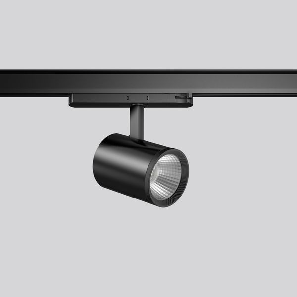 LED-Anbaustrahler mit modernen Design in Zylinderform ohne sichtbare Kühlrippen. Gehäuse Aluminium-Druckguss und Stahlblech pulverbeschichtet. Im Adapter integriertes Track-In Betriebsgerät. 356° horizontal dreh, und 90° vertikal schwenkbar. Frontring Aluminium-Druckguss schwarz. Hybrid-Optiksystem mit Polycarbonat-Linse und Reflektor Aluminium facettiert für besonders homogene Ausleuchtung. Spezielle Clickbeam-Linse geeignet für verschiedene Ausstrahlungswinkel. Mittels Druckmechanismus verstellbare Linsenposition zum Einstellen des Ausstrahlungswinkels. Schwarzer Frontring zur seitlichen Entblendung. UVA, und IR-freies Licht. Mit Multi-Adapter für 3-Phasen-Stromschienen 230 V. Geeignet für Stromschiene an Decke. Betriebsgerät im Adapter integriert. Werkzeuglos montierbares Zubehör: Wabenraster.
