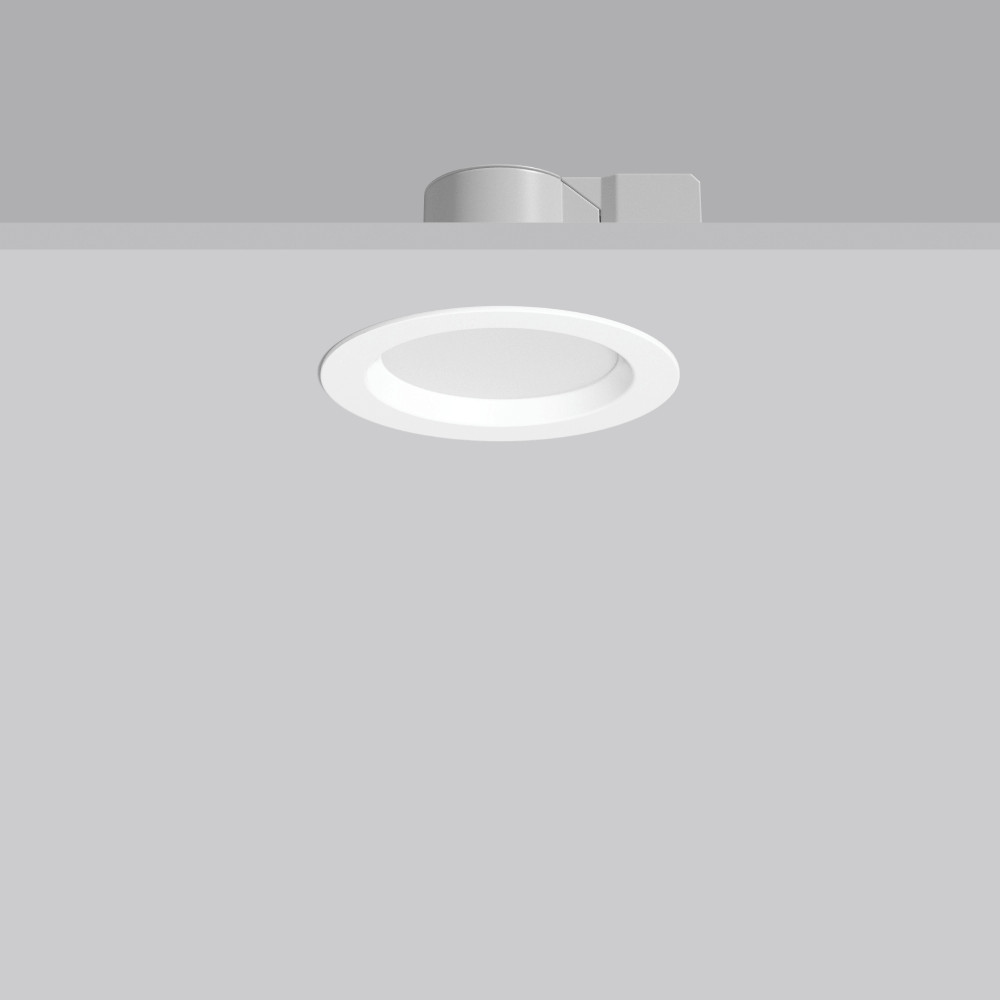 Rundes Einbau-Downlight. Gehäuse aus UV-beständigem Polycarbonat. Abdeckring Aluminium-Druckguss pulverbeschichtet. Diffusor UV-beständiger Kunststoff (Polycarbonat) opal, schlagzäh. MultiColour: Farbtemperatur mit Schaltelement einstellbar. Auswahlmöglichkeit 3000 K oder 4000 K.Werkseitig auf 4000 K eingestellt. Werkzeugloser Einbau durch Federbefestigung. Betriebsgerät in separater Gerätebox mit Verbindungsleitung. Durchgangsverdrahtungsbox (5-polig) als Zubehör erhältlich.