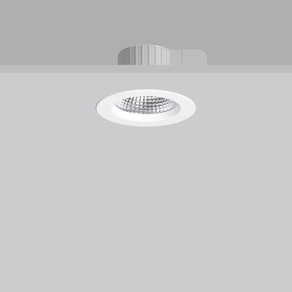Rundes Einbau-Downlight. Gehäuse aus UV-beständigem Polycarbonat. Abdeckring Aluminium-Druckguss pulverbeschichtet. Aluminium-Facettenreflektor hochglanzeloxiert für brillante Ausleuchtung. Satinierte LED-Abdeckung zur Reduzierung der Direktblendung. MultiColour: Farbtemperatur mit Schaltelement einstellbar. Auswahlmöglichkeit 3000 K oder 4000 K.Werkseitig auf 4000 K eingestellt. Werkzeugloser Einbau durch Federbefestigung. Betriebsgerät in separater Gerätebox mit Verbindungsleitung.Für Durchgangsverdrahtung geeignet. Sanierungsrahmen für verschiedene Deckenausschnitte als Zubehör.