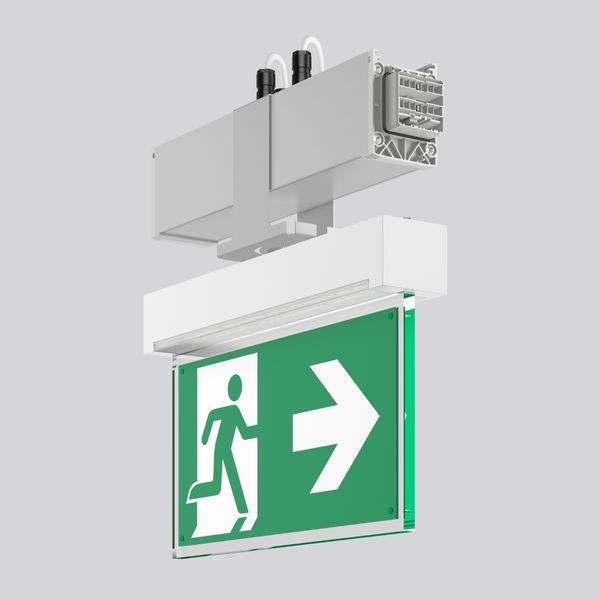 Modul inklusive Sicherheitsleuchte zur Rettungswegkennzeichnung. Systemprofil aus Aluminium-Strangpressprofil, eloxiert. Abdeckung aus Aluminium, Oberfläche wie Systemprofil. Sicherheitsleuchte mittels Haltebügel an Systemprofil befestigt. Leuchte aus robustem Kunststoff (Poycarbonat), weiß. Haltebügel aus Stahlblech, pulverbeschichtet, silberfarben. Displayscheibe Kunststoff mit Rettungszeichen einseitig/zweiseitig. Piktogramm-Set beiliegend. Einfache und werkzeuglose Montage von Systemprofilen mittels separatem Zubehör für Seil, oder Kettenaufhängung. Werkzeuglos steckbar und durch mechanischen Verbinder gesichert. 2, 5 m Anschlussleitung für flexible Positionierung der Sicherheitsleuchte am Systemprofil. 14-poliger LINEDO-Stecker (5 x 2, 5 mm² / 9 x 1, 5 mm²) zur Durchverdrahtung und Anschlussmöglichkeit an Notlichtstromkreis (1/2). Einspeisungsmodul, Verbindungs, und Montagezubehör bitte separat bestellen.