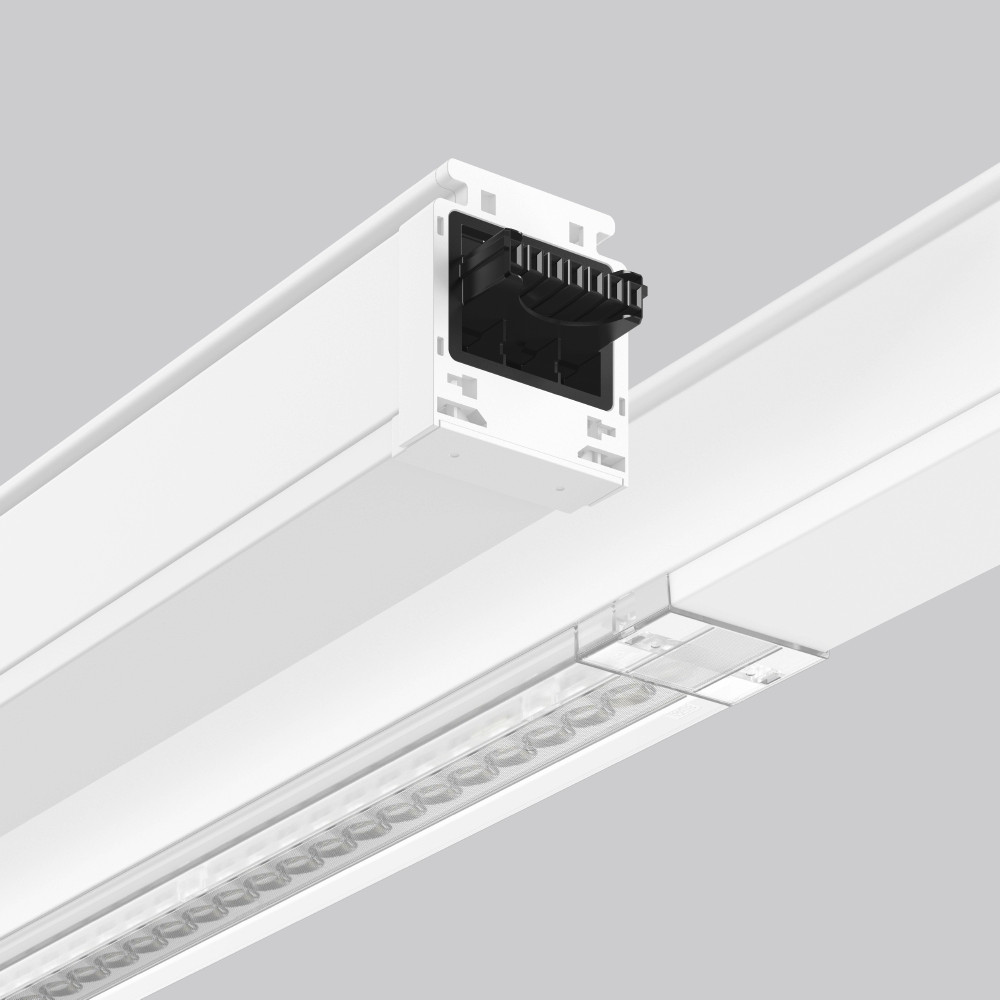 Schnellmontage-Komplettmodul für den universellen Einsatz als Lichtband. Lichtteilung: Blind 1,5 m / Licht 1,5 m / Blind 1,5 m. Systemprofil aus Stahlblechprofil, beschichtet. Hocheffiziente LED-Einheiten mit optimaler Lichtlenkung durch präzise Linsenoptik aus Kunststoff (PMMA) klar. Blindeinheiten mit Abdeckung aus Kunststoff weiß. Lichtverteilung breitstrahlend. Einfache und werkzeuglose Montage von Systemprofilen mittels separatem Zubehör für Seil-, Ketten- oder Deckenaufhängung. Werkzeuglos steckbar und durch mechanischen Verbinder gesichert. 5-poliger LINEDO-Stecker (5 x 2,5 mm²). Einfache Wahl der Phaseneinstellung durch patentiertes System von außen. Einspeisungsmodul, Verbindungs- und Montagezubehör bitte separat bestellen.
