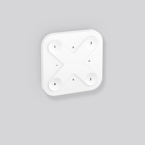 Batteriebetriebener, drahtloser Lichtschalter und Fernbedienung zur Steuerung von Casambi smart+free Leuchten. Ermöglicht direkten Zugriff auf alle wichtigen Funktionen der Casambi smart+free Lichtsteuerung. Die 4 frei programmierbaren Tasten können innerhalb der App konfiguriert werden. Über die beiden Wippen können jeweils die Farbtemperatur und das Dimmlevel der Leuchten eingestellt werden. Technische Eigenschaften: Reichweite: Bis zu 60 Meter im Freien, Batterie (enthalten): CR2430 Lithium-Knopfzelle, Batterie-Lebensdauer: 2-5 Jahre, je nach Nutzung.