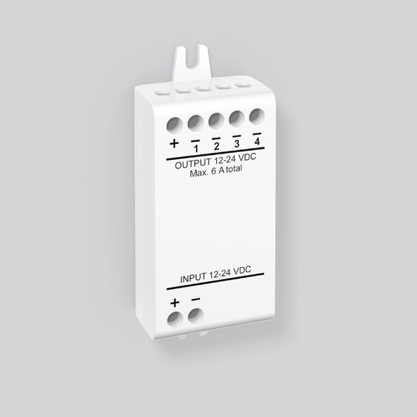 Bluetooth-steuerbarer, Casambi-fähiger 4-Kanal-PWM-Dimmer für LED-Lasten mit konstanter Spannung, z. B. LED-Streifen und LED-Module mit konstanter Spannung. Für die Versorgung wird eine 12-24 VDC-Spannungsversorgung (nicht dimmbar) benötigt. Das Modul kann bis zu vier Kanäle steuern und ist somit für RGBW, und TW-Anwendungen (Tunable White) geeignet. Der maximale kombinierte Ausgangsstrom beträgt 6 A und kann frei auf 1, 4 Kanäle aufgeteilt werden. Steuerung mittels Android / iOS Gerät möglich, App kostenlos zum Download verfügbar. Durch die kleine Bauform ideal für den Leuchteneinbau geeignet. Gehäuse Kunststoff.