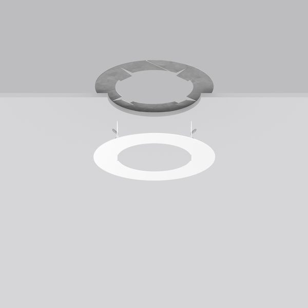 Einbaurahmen Stahlblech blank/pulverbeschichtet (2-teilig) zur werkzeuglosen Montage von Einbauleuchten in bauseits vorhandene Deckenausschnitte. Federbefestigung. Vorhandener Deckenausschnitt: Ø 210, 260 mm. Geeignet für Einbauleuchten mit Deckenausschnitt: DA 195, 205 mm.