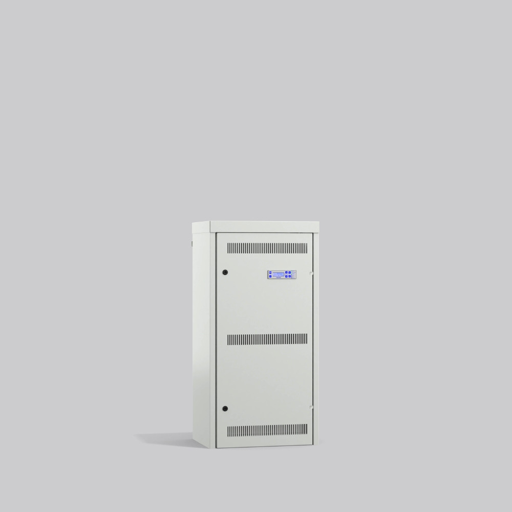 Gruppenbatterieanlage (LPS) für Mischbetrieb aller Schaltungsarten innerhalb eines Stromkreises. Einfache Skalierbarkeit der Anlagen durch modularen Aufbau. Wahlweise Einzelleuchtenüberwachung im Mischbetrieb oder Stromkreisüberwachung je Endstromkreis. Zur eindeutigen Lokalisation der angeschlossenen Leuchten kann für jede Leuchte ein Standort hinterlegt werden, der im Fehlerfall im Klartext angezeigt wird. Die Kommunikation der Anlage mit den Leuchten erfolgt hierbei über Powerline Communication. Busleitungen zu den Leuchten werden nicht benötigt. Über die serienmäßig vorhandenen digitalen Eingänge können Schalthandlungen ausgelöst und über die potentialfreien Wechselrelais Meldungen an eine übergeordnete GLT oder ein Meldetableau weitergeleitet werden. Automatische Führung eines detaillierten Prüfbuchs der Anlage. 8 frei programmierbare Eingänge und 4 Melderelaise für ZLT (Betriebsbereit, Störung, Batteriebetrieb und frei konfigurierbar), 1 Busabgang für externe Module. Kombischrank für Elektronik und Batterien. Gehäuse aus Stahlblech, lichtgrau (RAL 7035). Türanschlag: rechts. Kabeleinführung von oben. 2 Batteriefächer je (BxTxH) 570x360x210 mm.