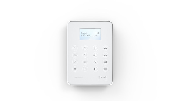 Funk Bedienelement für die Basis der Alarmserie SP310 von Safe2Home. Mit dem Safe2Home externen Bedienteil können Sie ganz bequem Ihre Alarmanlage via Tastencode oder RFID Chip Scharf- und Unscharf stellen. Um das RFID Feld zu aktivieren drücken Sie 3 Sekunden lang die “Zurück Taste” (links unten). Über das große LCD Display können Sie den aktuellen Zustand Ihres Alarmsystems einsehen. Das externe Bedienfeld kann mit 3x AAA Batterien ca. 1 Jahr betrieben werden. Zusätzlich ist ein 12 Volt Stromeingang vorhanden. Wenn der Akkustand niedrig wird erhalten Sie eine Information. Es können zudem mehrere Benutzer einprogrammiert werden. Sehen Sie sich das Installationsvideo zum Tastenfeld an: https://youtu.be/LgNa5-HLSOI Rolling-Code Jeder Kontakt/Sensor hat einen Rolling Code. Das bedeutet sobald ein Funksignal (z.B. Fensteröffnung) abgegeben wird, generiert der Sensor einen neuen Code, sodass dieser von Unbefugten nicht abgefangen und verwendet werden kann. Beispiel: Früher konnte man das Funksignal der Fernbedienung von einem Auto abfangen und somit das Fahrzeug öffnen à dies ist bei der SP310 nicht möglich. 2-Wege-Kommunikation: Die SP310 Basis hat eine 2-Wege-Kommunikation. Dies bedeutet, dass die Sensoren und Basis untereinander kommunizieren (per Funk). Es wird automatisch alle 5 Minuten eine Abfrage des Funksignals und des Batteriestatus des Sensors durchgeführt. Sollte in dem Fall z.B. ein Sensor kein Signal senden (da er z.B. durch eine leere Batterie ausgeschaltet ist) überprüft die Basis direkt das fehlende Signal und gibt eine Meldung via App und zeigt dies an der Basis an. Zusätzlich kann man über die App manuell das Funksignal und Batteriestatus abfragen, oder die Abfrage-Frequenz von 5 Minuten beliebig einstellen. Volle Kontrolle über jeden Kontakt/Sensor. Individuelle Einstellung für jeden Kontakt. Ein weiterer Vorteil der SP310 ist, dass jeder Kontakt eine „eigene Zone“ hat. Somit kann über die APP jeder Kontakt individuell umbenannt werden. Sie haben die volle Übersicht, wo welcher Melder montiert wurde.