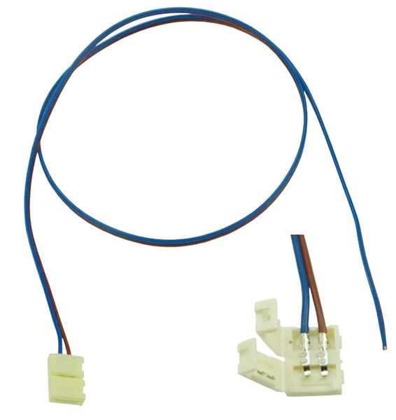 Anschlusskabel 70cm mit Steckverbinder für 8mm-LED-Band. Bitte beachten: Isolierung muß an der Kontaktierung des Lichtbandes vorsichtig entfernt werden! Steckverbinder 2pin für 8mm Band, Anschlusskabel mit abisolierten Enden, Länge 70 cm, Gehäusefarbe: braun/blau.