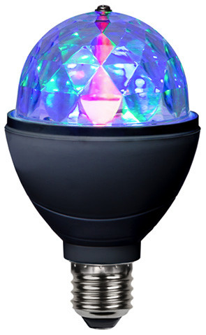 LED Disco 80x130mm Rotierende Party-LED mit schwarzem Gehäuse, kristallartige Abdeckung erzeugt besondere Lichteffekte in Rot, Grün und Blau, geeignet für alle gängigen Leuchten mit E27-Fassung Energieeffizienzklasse: nicht kennzeichnungspflichtig Quecksilbergehalt (mg): 0