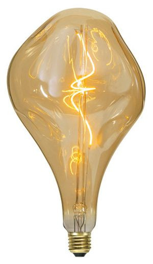 LED Designkugel 165x280mm dimmbar Große Design-Kugel LED mit getöntem Rauchglas und einem geschwungenen Filament-Faden im Innern. Die außergewöhnliche Form kann mit der passenden Kabel-Aufhängung idealerweise als Pendelleuchte verwendet werden. Quecksilbergehalt (mg): 0 Farbwiedergabeindex (Ra): 95