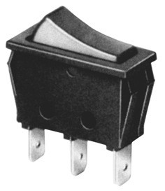 Wippschalter 1pol. schwarz/rot-transp. Wippschalter, 30x11mm, schwarz/rot-transparent, 16A, 250V, 125°C, 1-poliger Ausschalter, beleuchtet, Rastbefestigung für Plattenstärken von 0,5-2,5mm, Flachsteckanschlüsse 0,8x6,3mm Energieeffizienzklasse: nicht kennzeichnungspflichtig