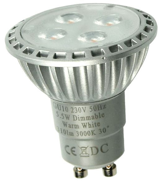 | Kurzbeschreibung | LED Reflektorform PAR16 4SMD 50x55,5mm GU10 230VAC 5W 280Lm 2700K 30° dimm |